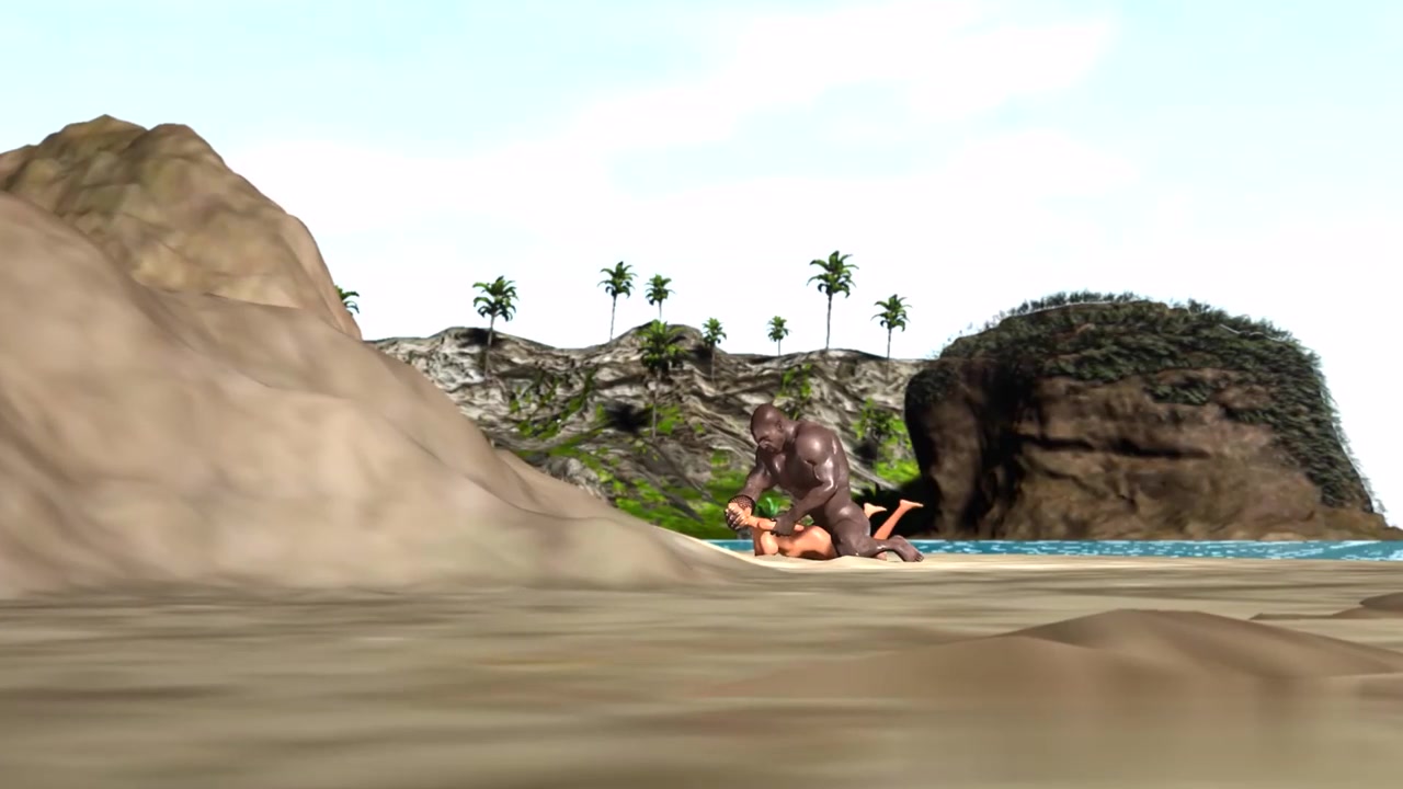 海滩上大黑人男子在野蛮岛上撞上粉穴性爱。