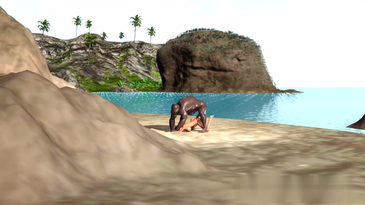 海滩上大黑人男子在野蛮岛上撞上粉穴性爱