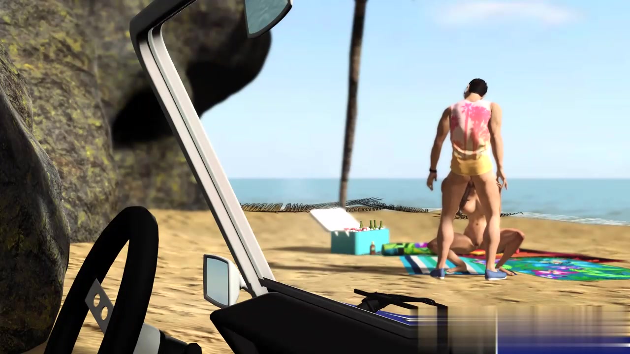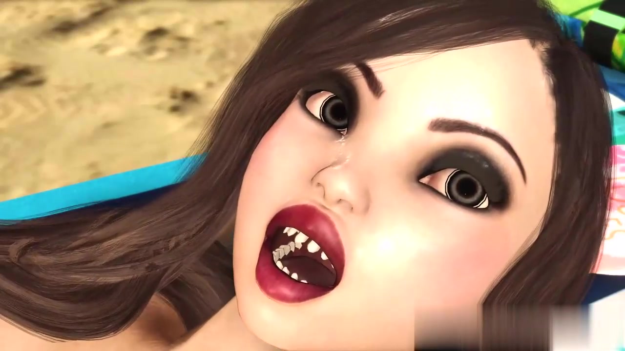 性感的霍尼·布鲁内特在海滩上激情性爱高潮