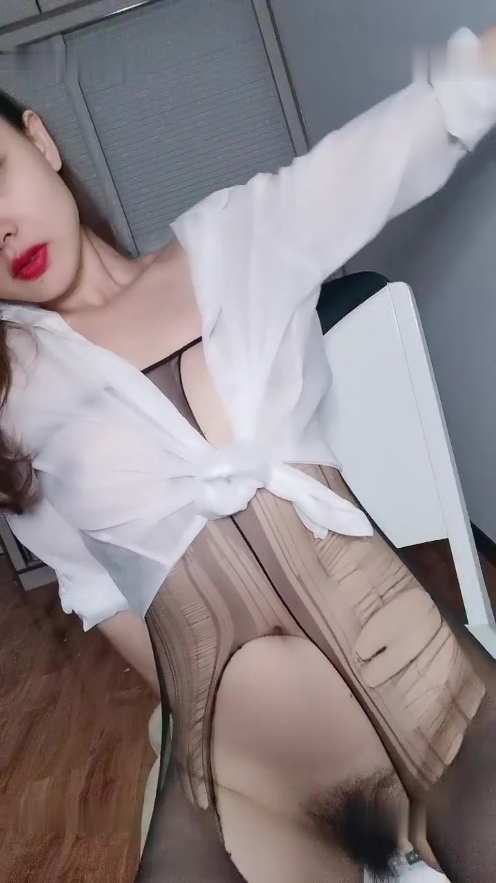 美女穿着黑丝红边大长腿,在凳子上大秀。
