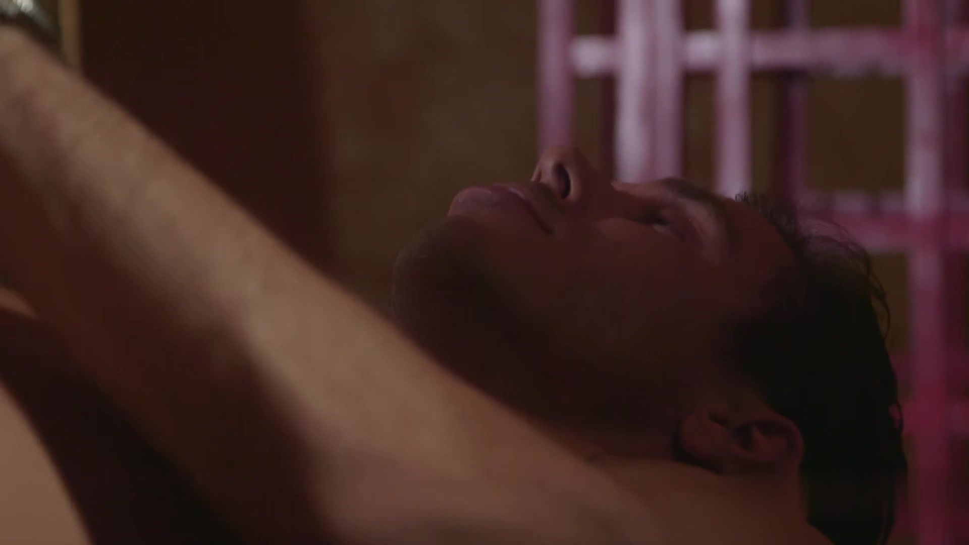绿色的夜幕背景下是3人的疯狂精液输出