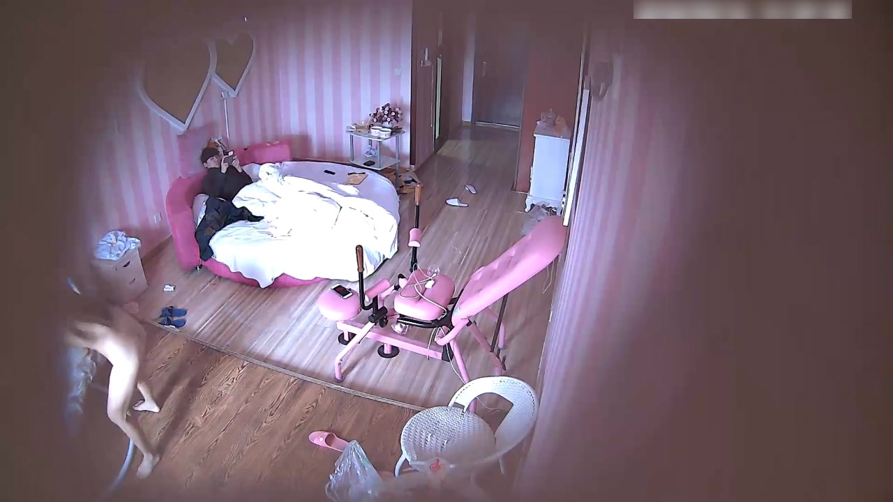 样子很猥琐的嫖客很猴急被肉丝粉裙小姐拍了一下