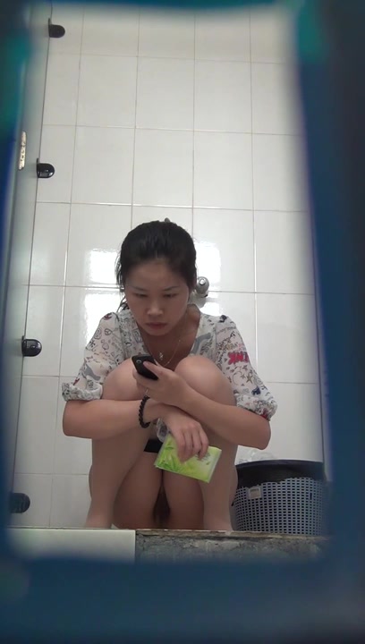 商场排队厕拍系列24 妹子上厕所也不忘记拿出手机自拍,看起来萌萌哒