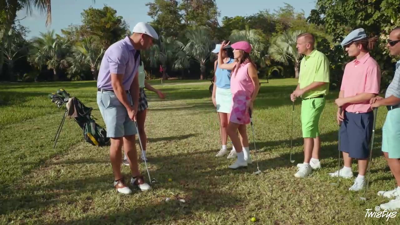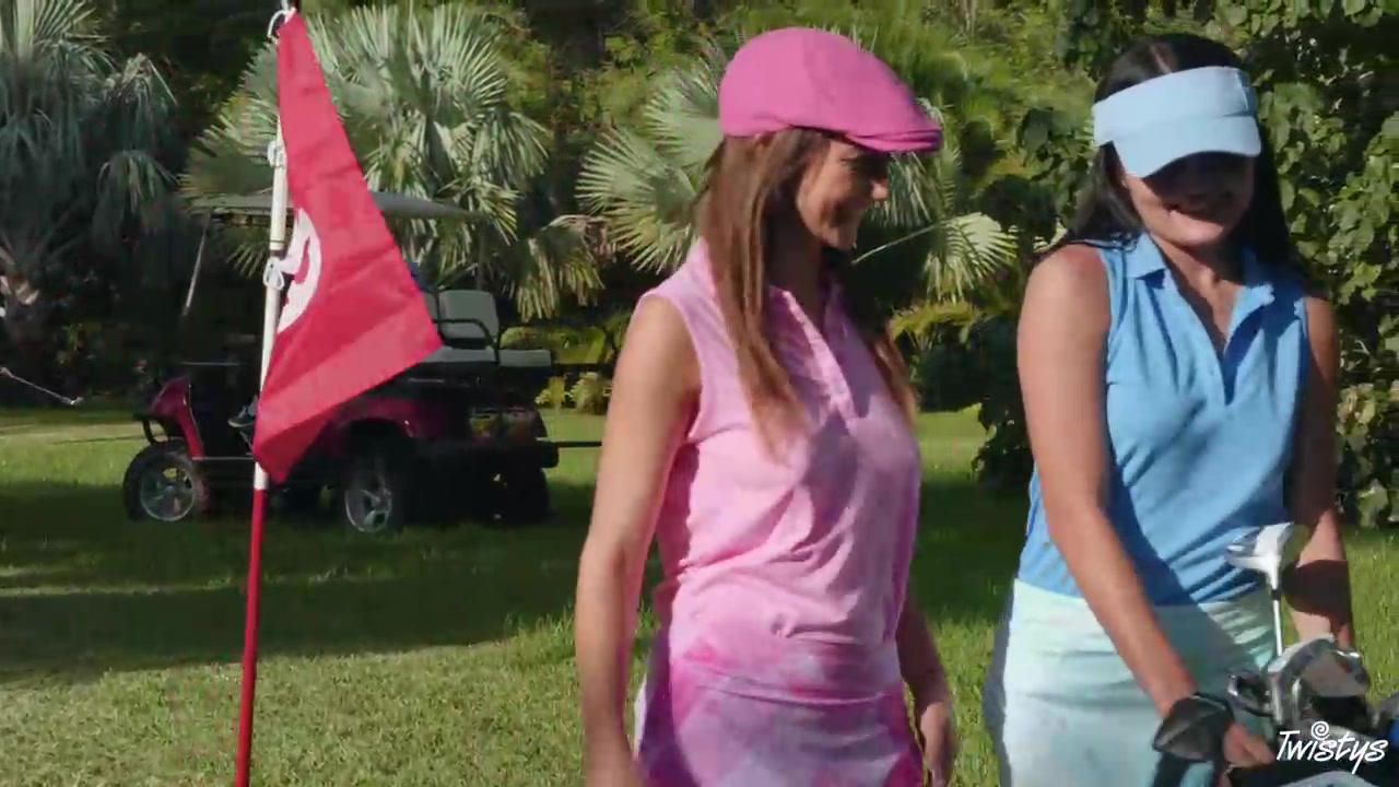在草坪上与两个高尔夫女郎乱交