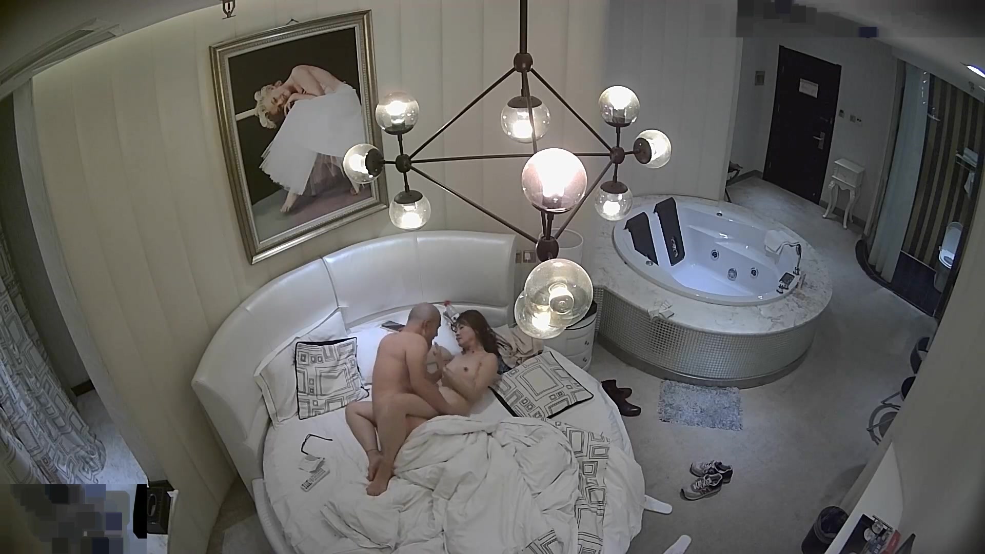 精品酒店豪华套房光头佬和情人开房偷情中午吃了大蒜妹子嫌他有臭味不愿和他干就强搞