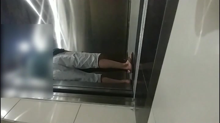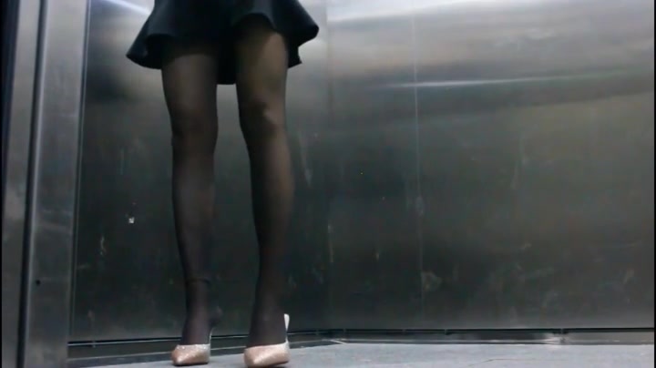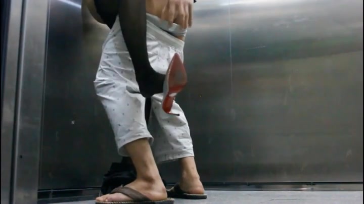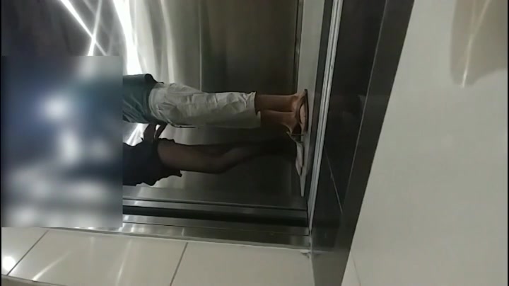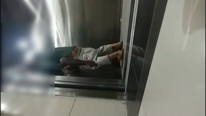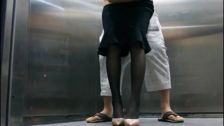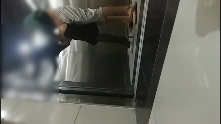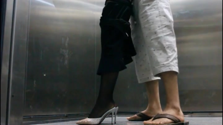 屌丝小混混穿着短裤拖鞋去接穿着性感白领女友下班看周围没有人直接在电梯里啪啪
