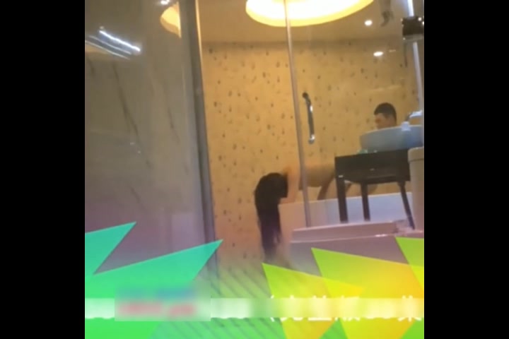 成都某大屌健身教练约长发妹开房浴室打炮