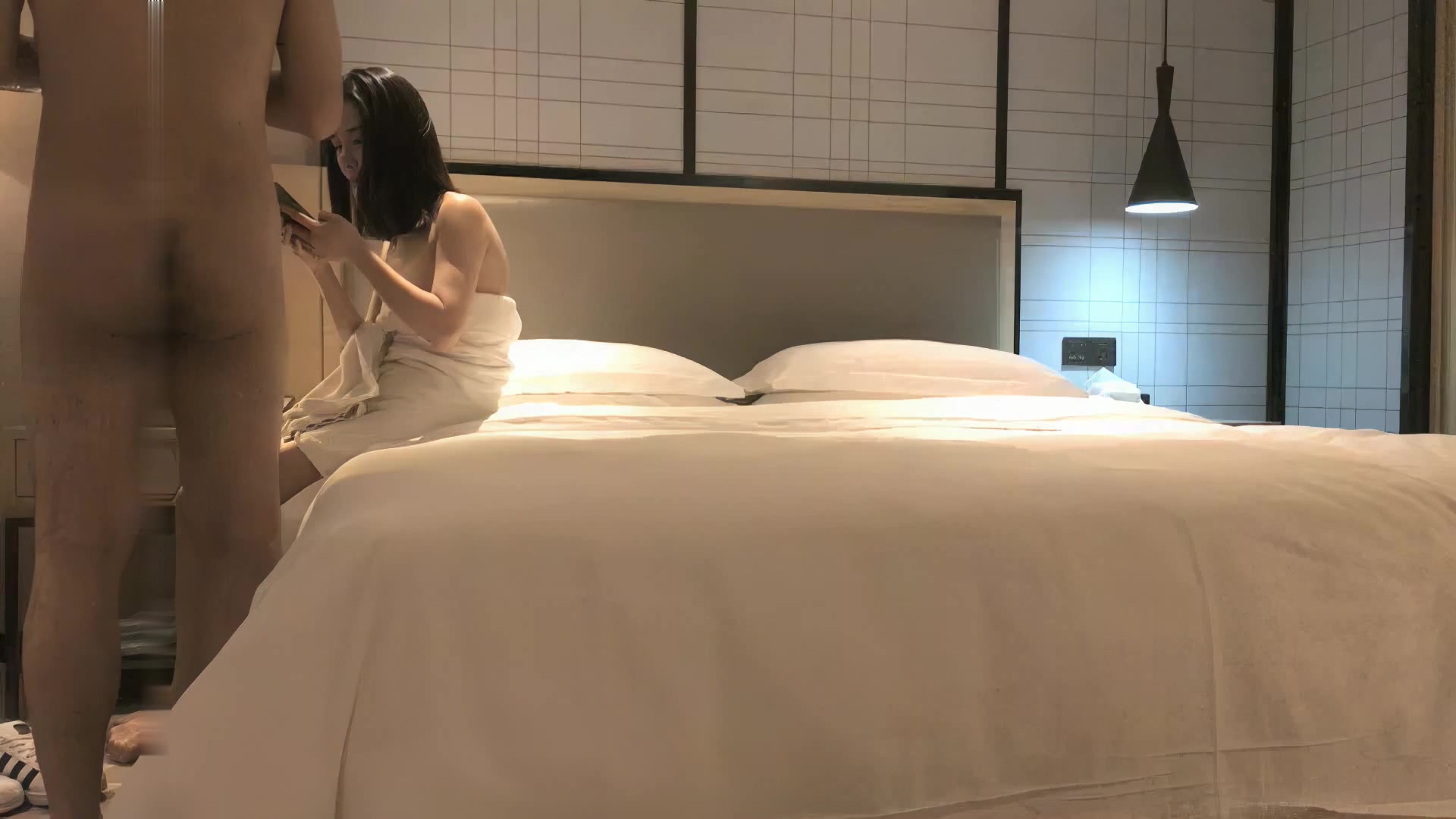 跟男友做完後趁他睡著,偷偷找炮友來刺激一下!3P無碼性愛!